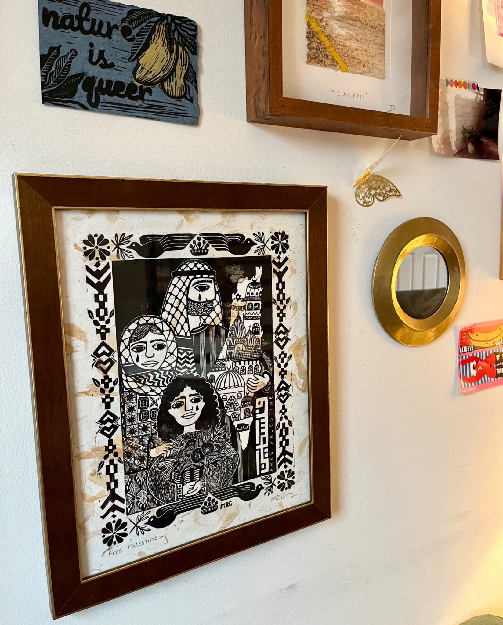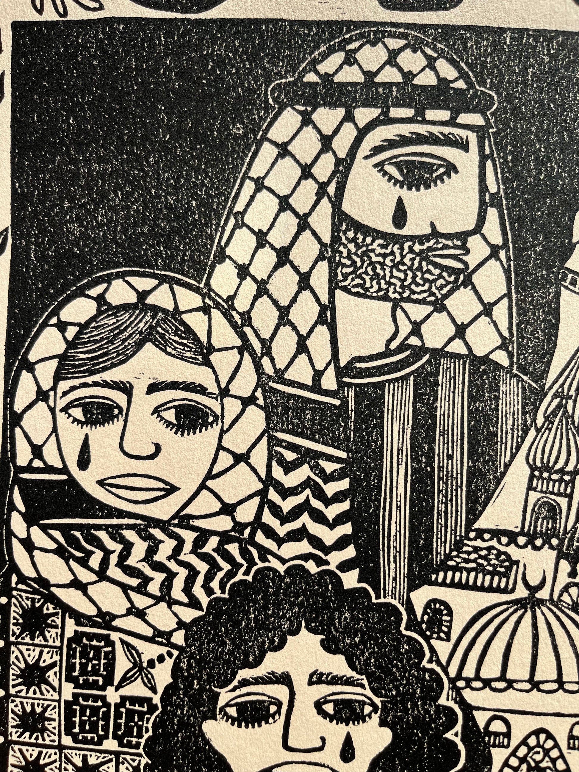 This print will be an ode to life and liberation from me, a Black American Jewish person who believes wholeheartedly in a Free Palestine from the river to the sea.