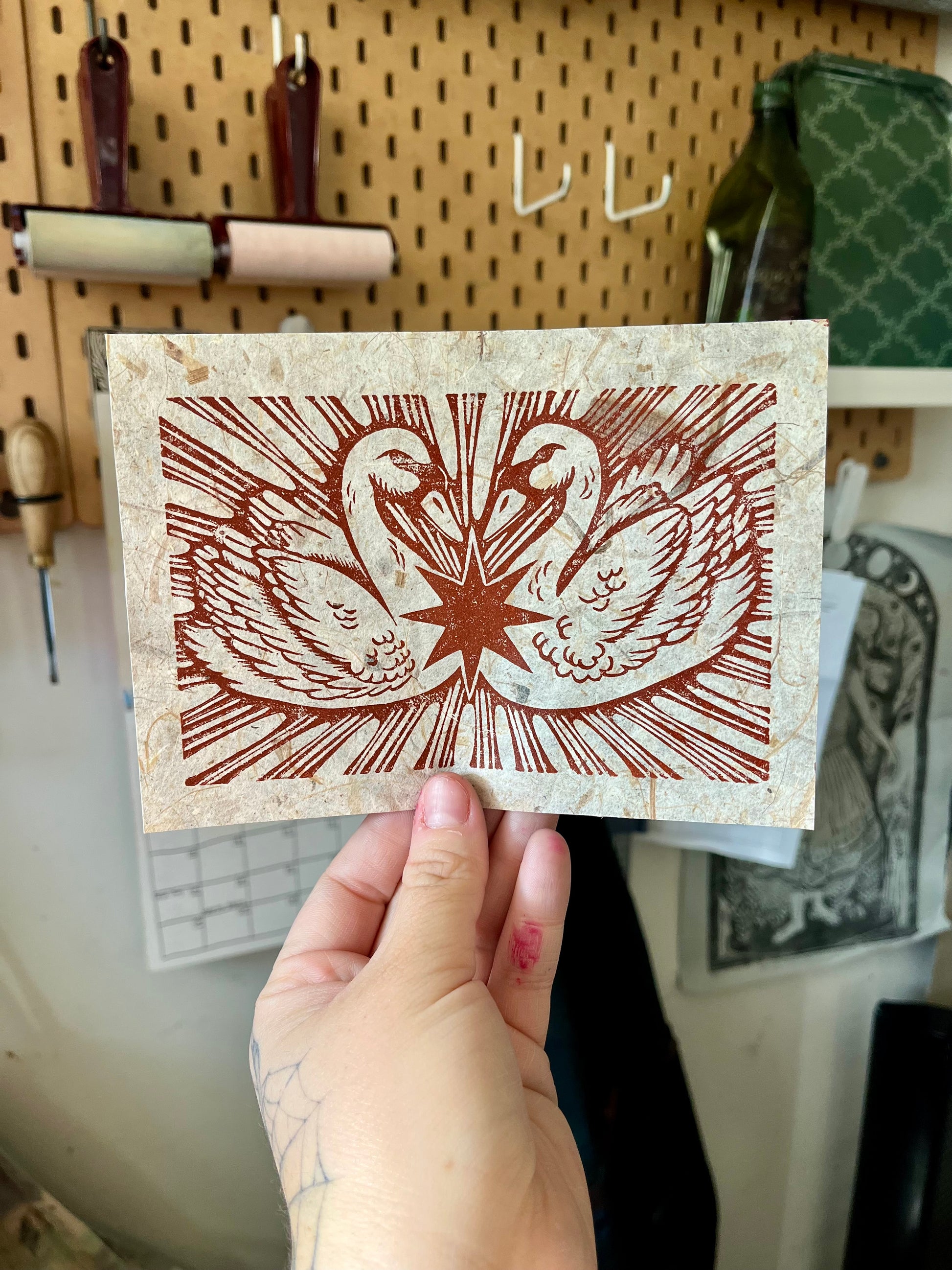 *Please note that due to the nature of hand-carved linoleum block printing, every print will have its own unique quality. Each edition is inspected to be the best quality and similar, but I cannot ensure exact replica of the print pictured on this site. Part of the magic of printmaking is all of the print-specific marks like "noise" or carving marks that add to the feel of the print. Please take note of this when ordering.